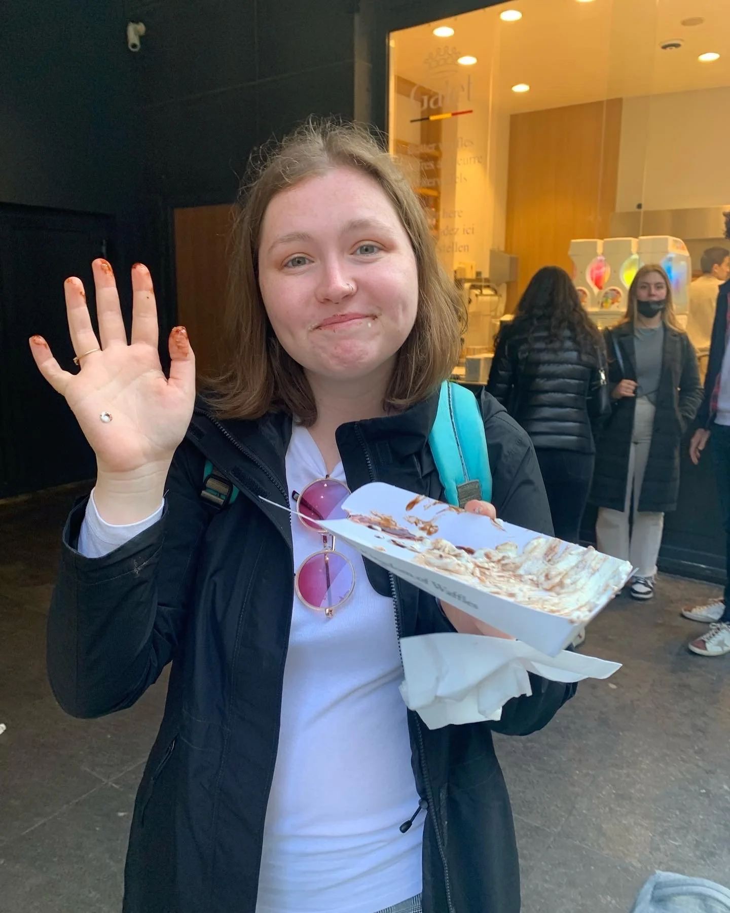 The famous jacket! Protected my identification so many times. A half an hour after this, someone got pickpocketed. Feat. me eating a Belgian waffle.