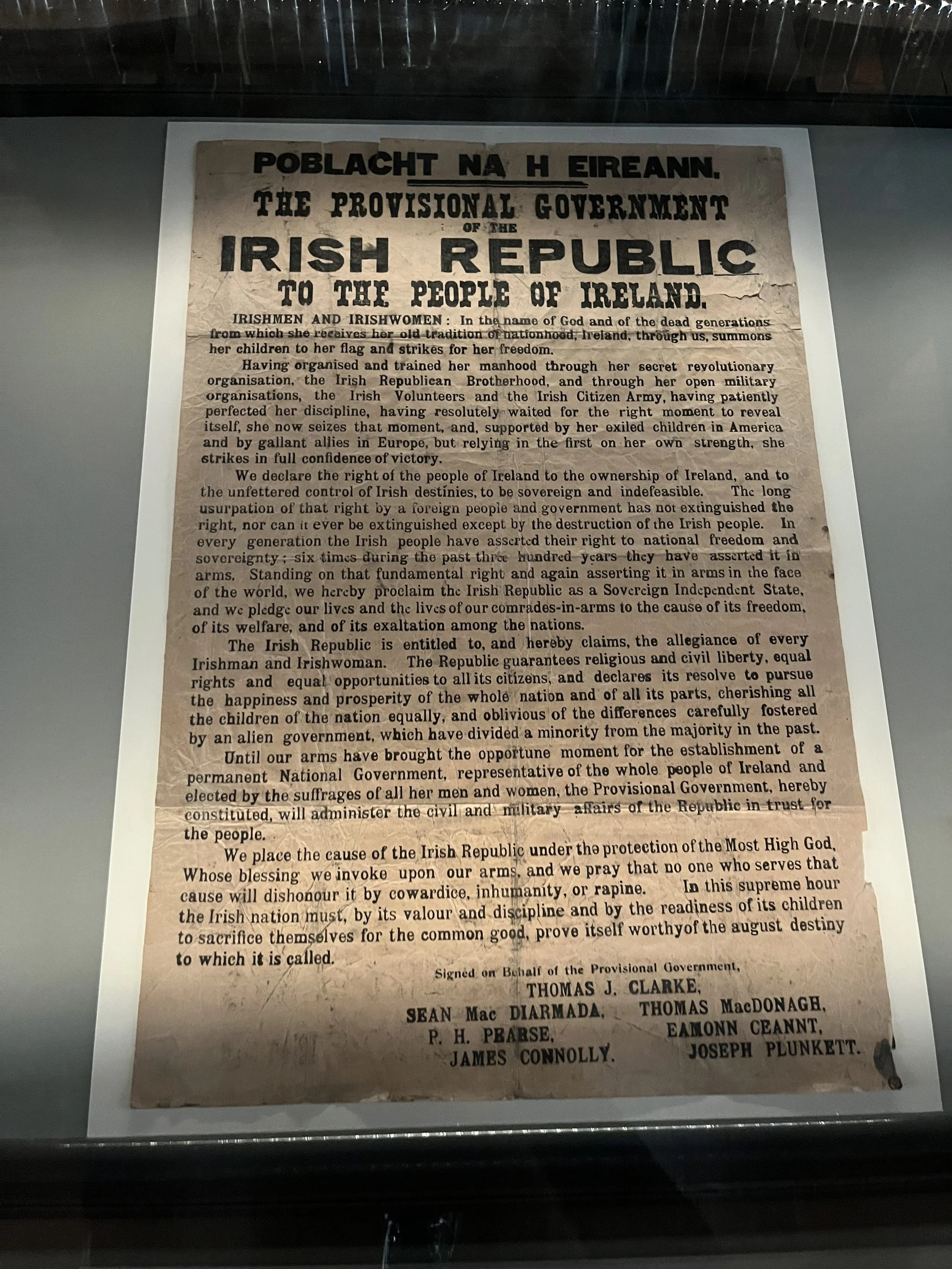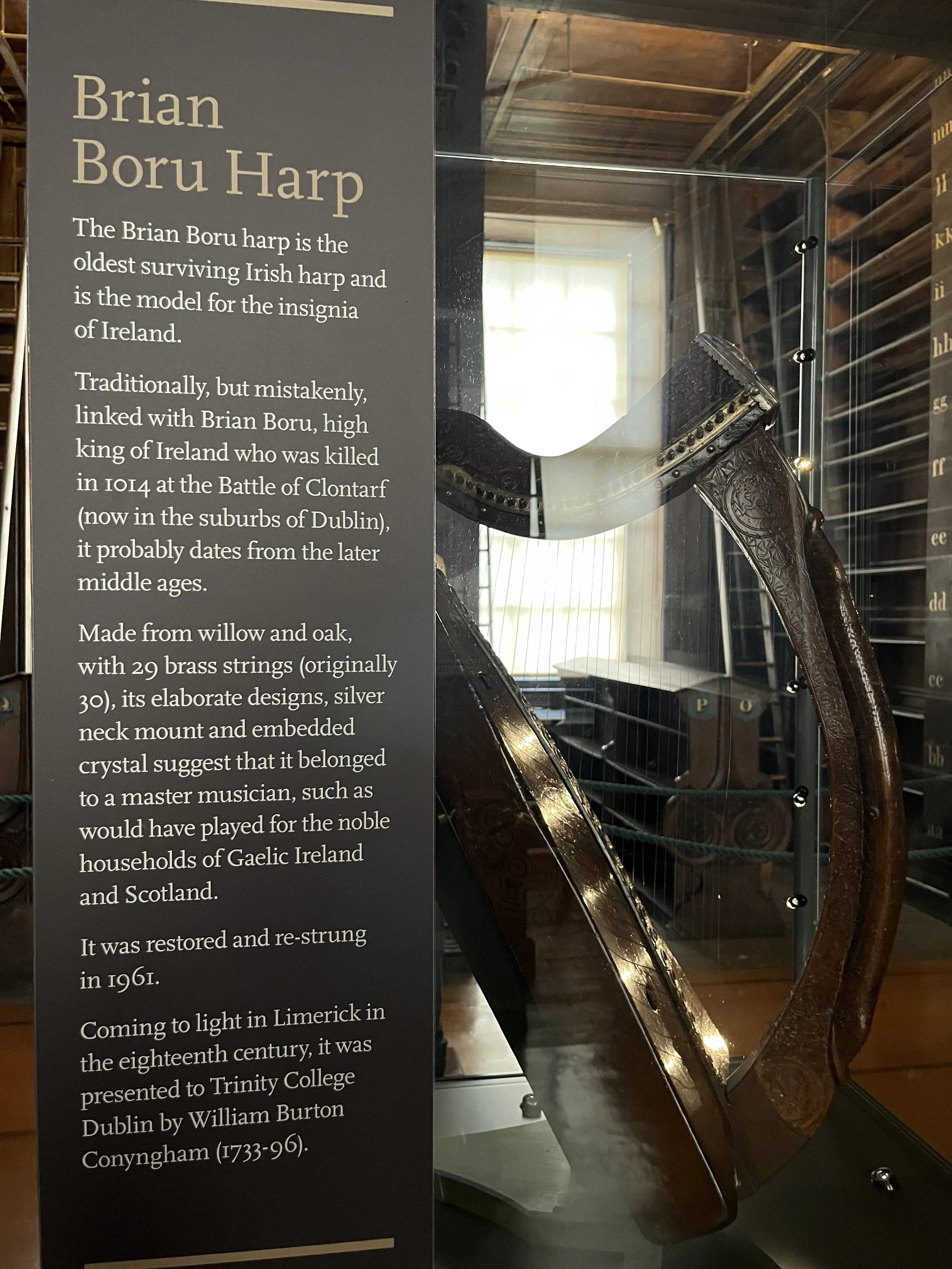 The next day I got up early (because I’m only in Dublin for 24 hours, once!) and had an Irish breakfast which included black and white pudding… yes, it is basically a sausage with pig’s blood and oatmeal. AND YES! I ate it and I would eat it again! After a very hearty breakfast, I went to Trinity College, the most prominent university in Ireland. There, I saw three of the most well-known pieces of Irish history. First, I learned about the most ancient Irish book, The Book of Kells, a bible from the 800s that survived the famines and wars. Then I saw the oldest harp in Ireland, Brian Boru harp, also known as the O'Neill Harp or Trinity College harp. This is the one that is on the Guinness logo and Ryanair logo. Trinity College also holds the 1916 Proclamation of the Irish Republic. It’s like seeing the Declaration of Independence which is funny because both documents resist against the British. And of course, I walked through the very famous Reading Room. Many scholars have studied here from Oscar Wilde and James Joyce. It inspired so movies from Harry Potter to Star Wars.